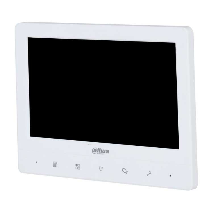 DHI-VTH1020J-T+DHI-VTO1000J DHI-VTH1020J-T 7-дюймовый TFT-экран, сенсорный, 1024×600; 4-х проводная связь, функция видеодомофона: разблокировка, голосовой вызов, видеозвонок, регулировка громкости; Поддержка 2 вызывных панелей + 3 внутренних мониторов, несколько звуков звонка; поддержка цифрового широкого динамического диапазона (DWDR), DC12V/2A, 134х183х18 мм; DHI-VTO1000J - Вызывная видеопанель, накладная, 4-х проводная, CMOS-матрица 1,3 МП, угол обзора 70°, IP66, -30...+60°C, 132х46х34 мм,
