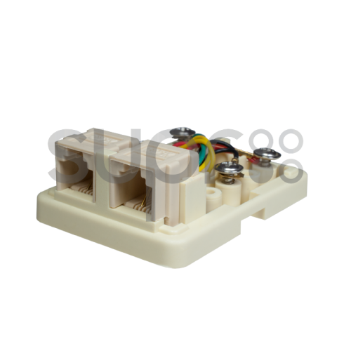 Неэкранированная телефонная розетка настенного монтажа. Имеет 2 порта RJ-12 (6р4с).