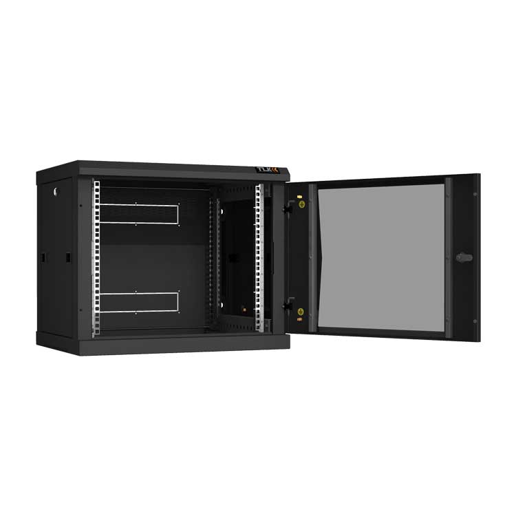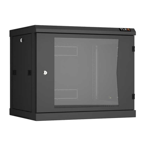 Настенный разборный шкаф TLK 19", 9U, стеклянная дверь, Ш600хВ503хГ450мм, 2 пары монтажных направляющих, черный.