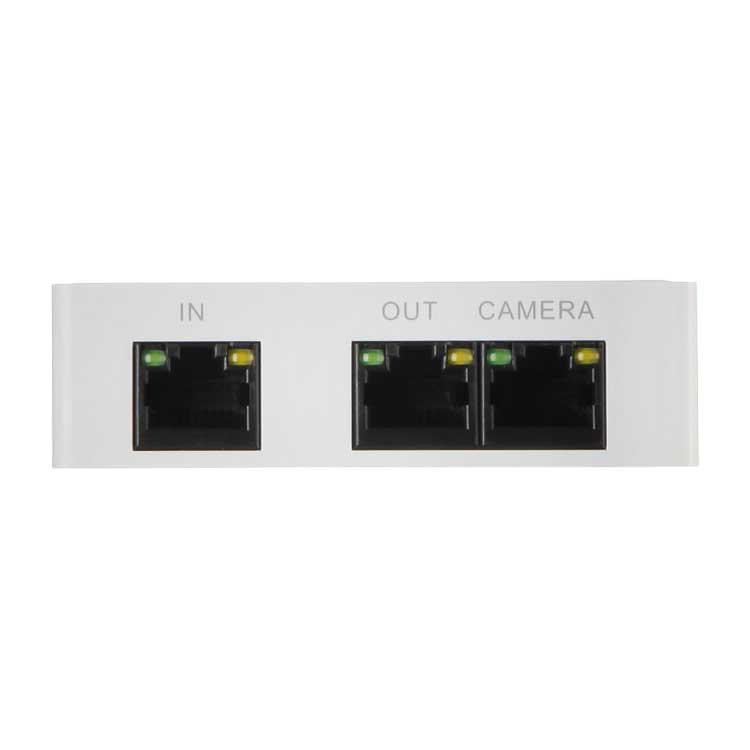 Порты: 1 RJ45 10/100Мбит/с (вход, PoE/PoE+), 1 RJ45 10/100Мбит/с (выход на удлинитель, PoE/PoE+), 1 RJ45 10/100Мбит/с (выход на IP-видеокамеру, PoE); каскадное подключение до 2 удлинителей (3 IP-видеокамеры) с питанием от инжектора DH-PFT1200; рабочая температура: -30°С~+65°С"